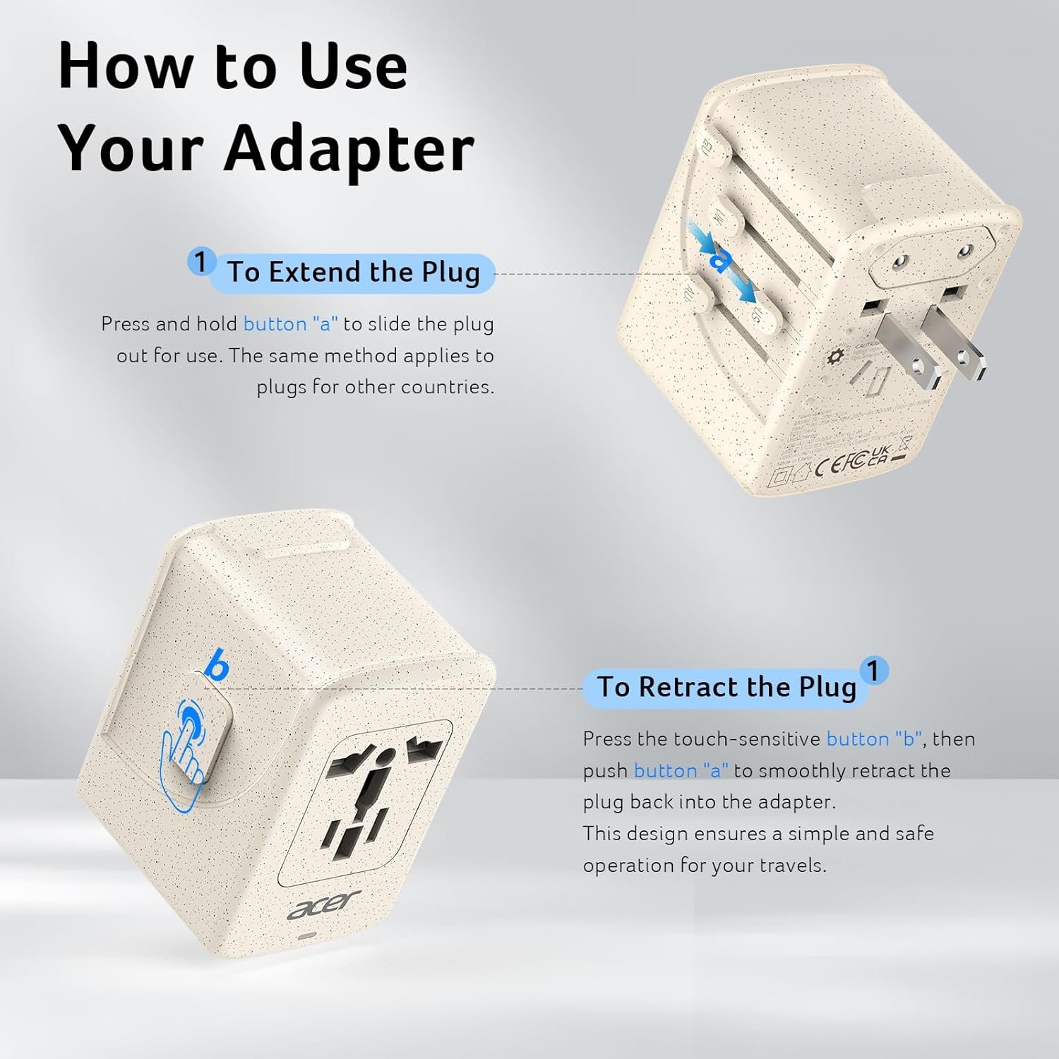 【European River Cruising Must-Haves】 This European travel plug adapter has no surge protection, nor cords, thus type c adapter can be taken aboard cruise ship. Measured at 2.0×2.2×3.0 inch, this compact adapter for europe plug fit easily into your luggage or backpack.