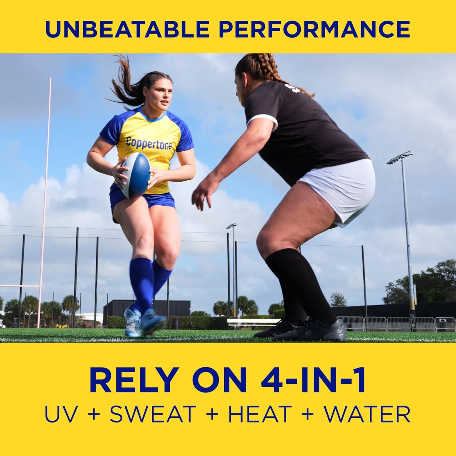Water Resistant: Coppertone Sport SPF 50 sunscreen lotion is water resistant (80 minutes), and stays on strong when you sweat